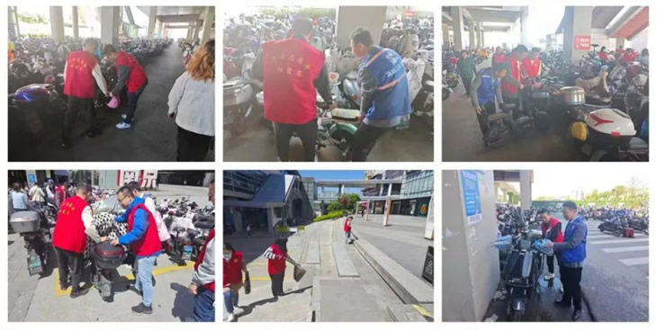 參與活動的黨員們積極參與到活動中來:面對人行道上出現(xiàn)的垃圾,他們不怕臟累,一次次耐心撿起,將煙頭、紙團等小型垃圾收集至垃圾袋中,大型垃圾則直接丟棄至就近垃圾桶;面對停放雜亂的電動車,大家則互相配合,合作整理,并引導正在停車的車主有序停放,讓原本略顯雜亂的停車區(qū)很快變得井井有條起來。
