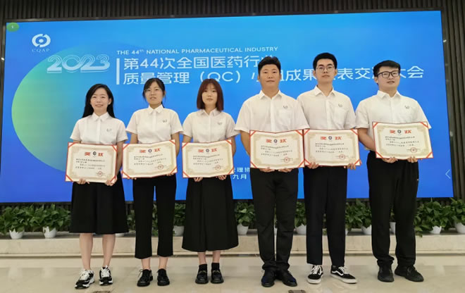 同時,會上,南京海陵藥業有限公司企業負責人李靜獲得“2023年全國醫藥行業質量管理小組活動優秀組織者”稱號,質量管理部部長馮小雪獲得“2023年全國醫藥行業質量管理小組優秀質量管理部長”稱號。