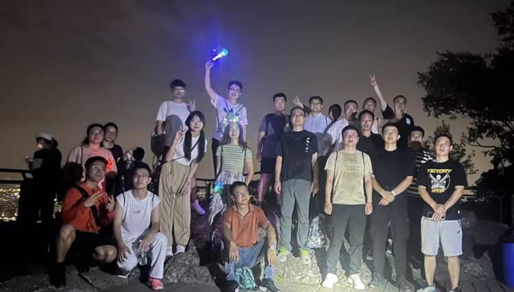 9月18日傍晚,報名參加登山的小伙伴們在公司門口領取物資,分成4人小隊向紫金山頂進發。5公里的路程雖頗具挑戰,但大家仍然興致高漲、熱情滿滿,一片歡聲笑語。
