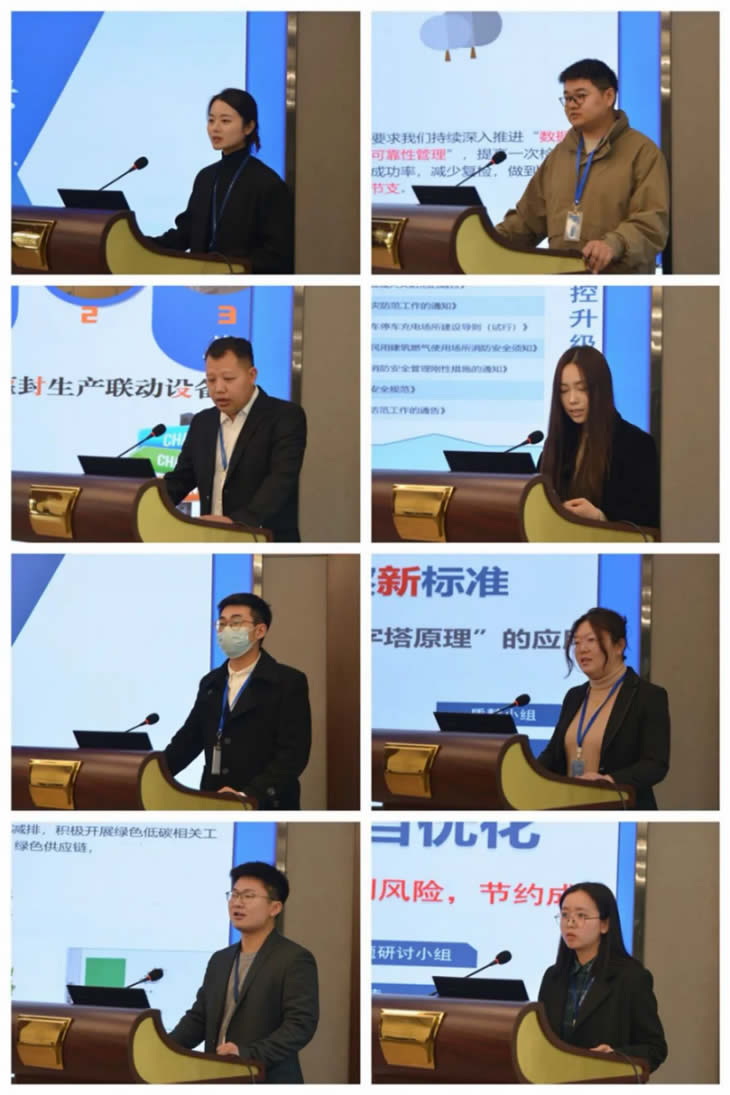 3月14日13:15,比賽正式開始。本屆大賽共有14個團隊參賽,涉及企業各業務模塊的創新應用。《基于TRIZ理論建立孟魯司特鈉中殘留溶劑的新方法》,《亞硝酸鹽過濾條件優化-提升一次性檢驗合格率》、《TOC項目優化》三個課題重點介紹了新結構化工具在質量管理中的結合應用;《產品A包衣效果改進》、《小容量洗灌封設備精準維護與效率提升》兩個課題探討如何提高產品生產環節的質量和效率;《基于動力中心制冷系統節能水泵的設計與應用》、《提高工廠經營成本競爭力》、《提升固體制劑產品排產效率》則在不同維度聚焦降能耗、控成本、提效率;《倉儲系統確認方法改進提升》、《如何建立潔凈服重復使用考察新標準》、《精準狙擊冗雜驗證過程》在驗證管理方面做出新探索;《基于智能物聯技術的廠區新能源車輛管理模式》、《零星工程管理模型下的供應商管理體系》、《以戰促訓——構建全員信息安全新紀元》實現了“業務+信息化”的組合創新,聚焦當下熱門的信息化、智能化轉型。